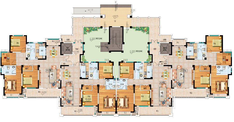 小區整體環境力求精細化,盡力營造視覺上享受。對綠化景觀與道路系統在整體不變的情況下,作細節上烘托。